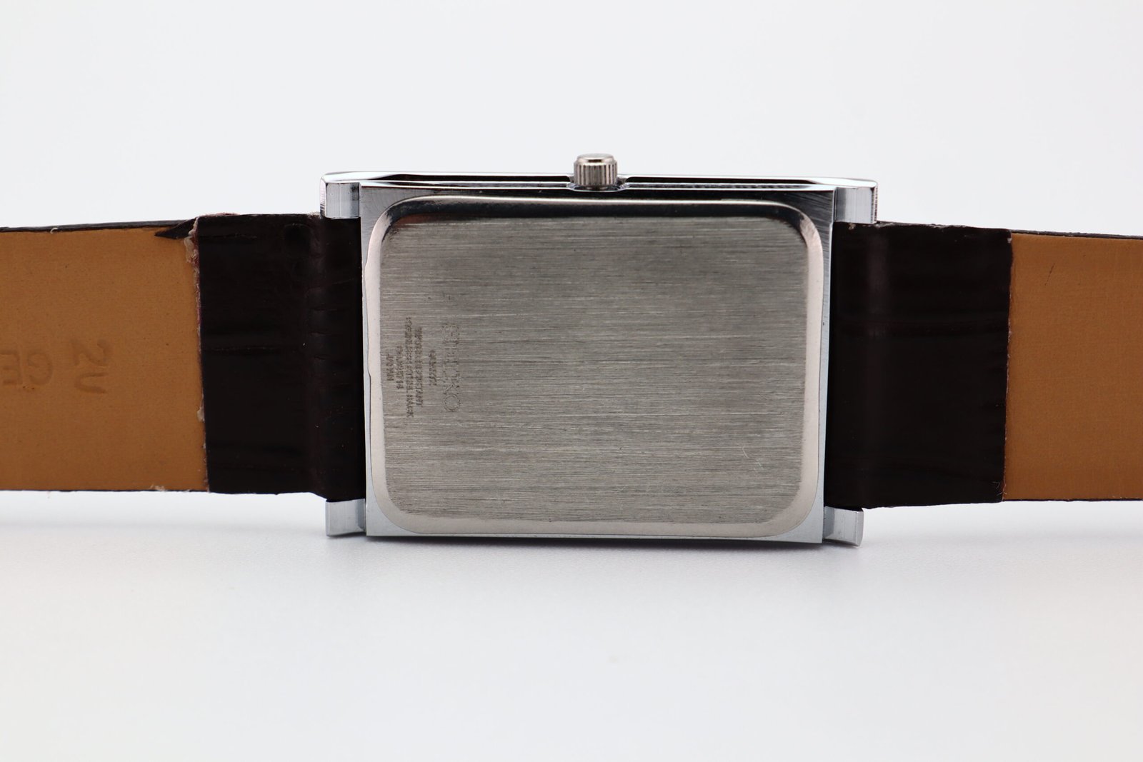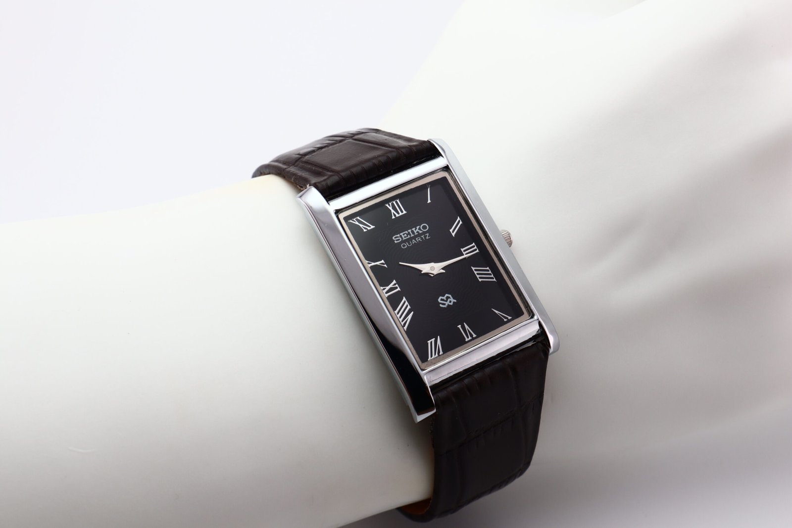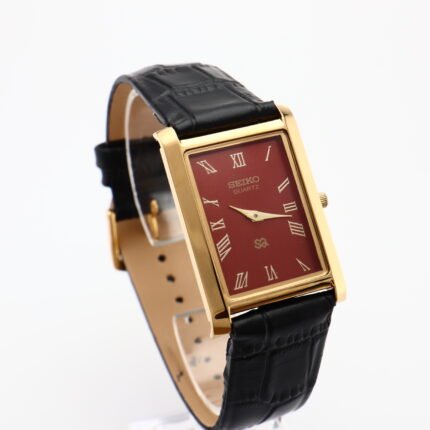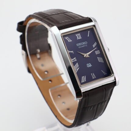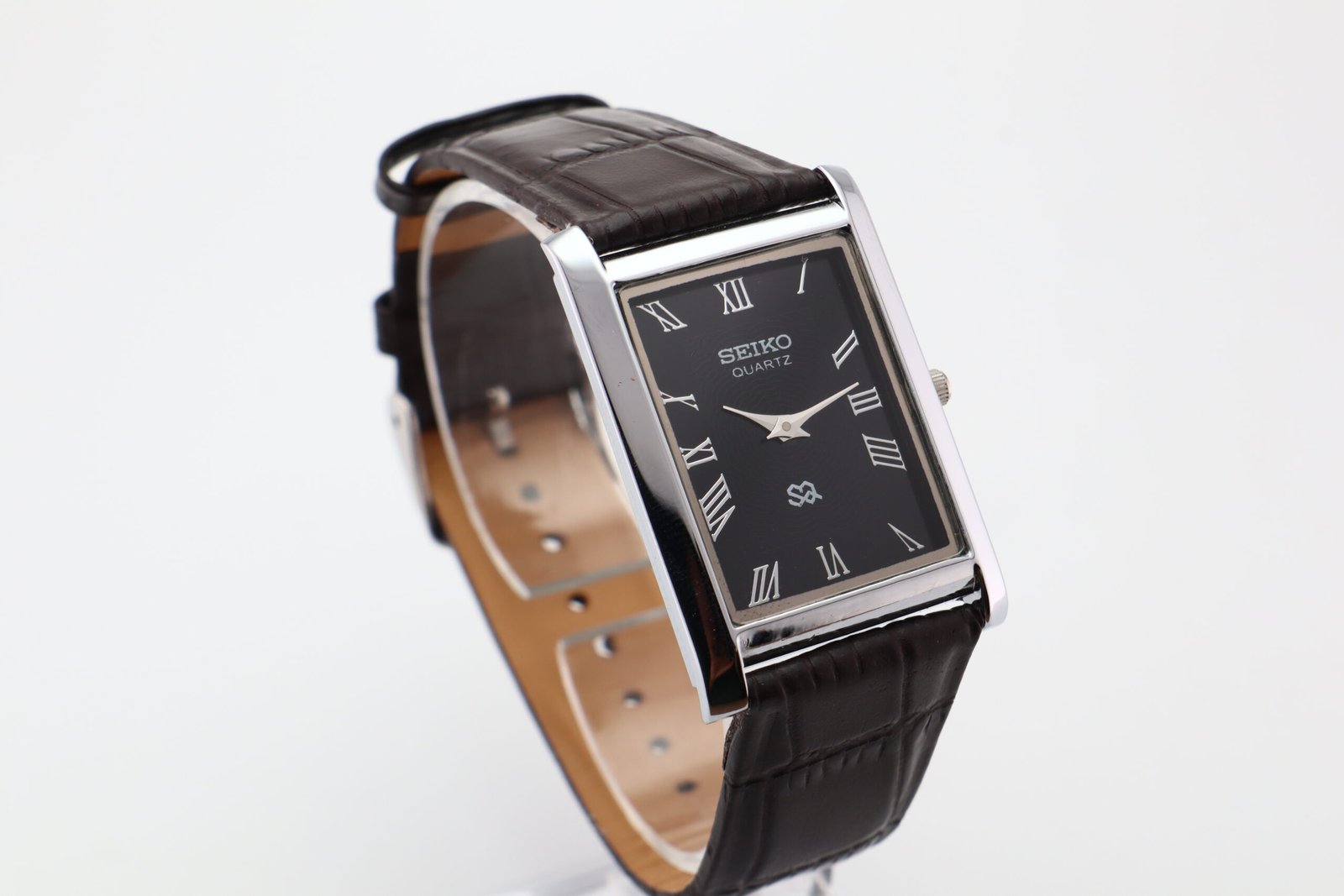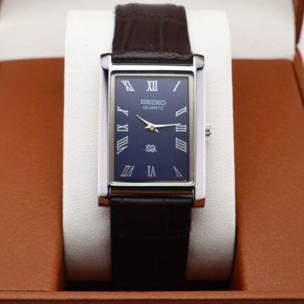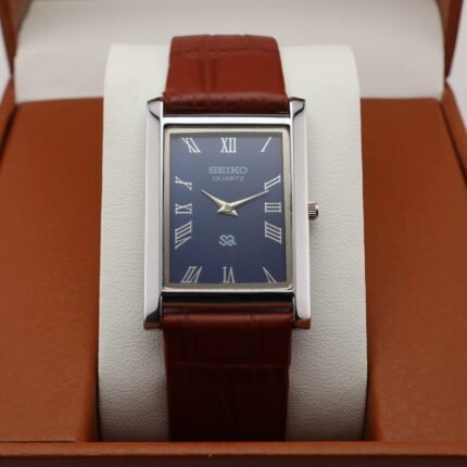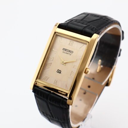 Refurbished Vintage Seiko Slim Tank Men’s Wrist Watch Black Dial With Dark Brown Strap