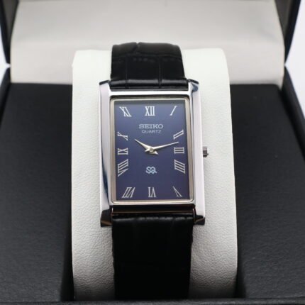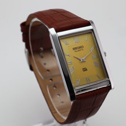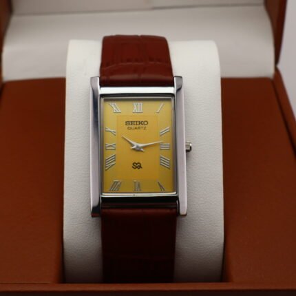 Be the first to review “Refurbished Vintage Seiko Slim Tank Men’s Wrist Watch Black Dial With Light Brown Strap”