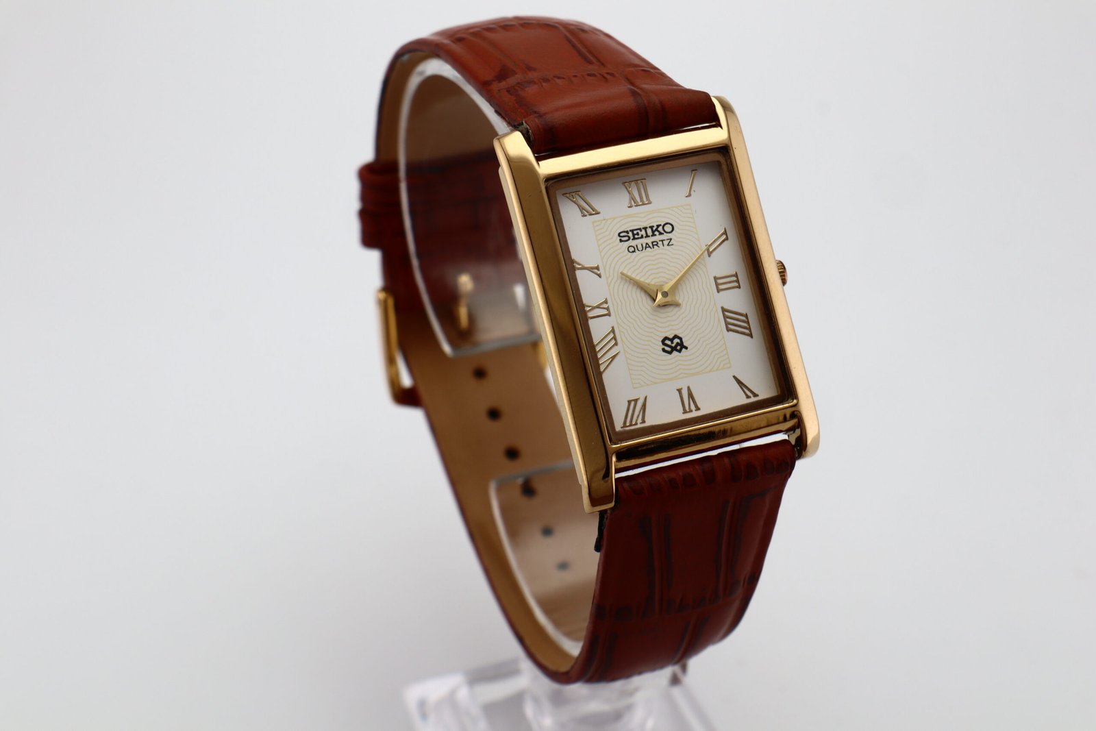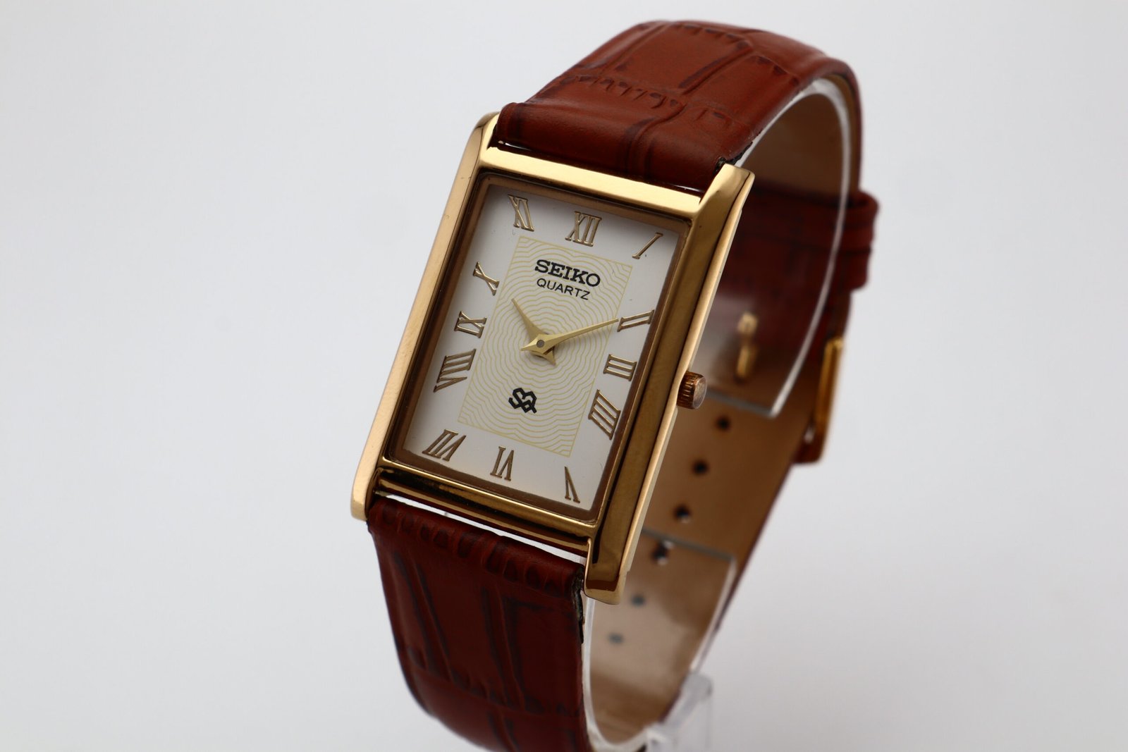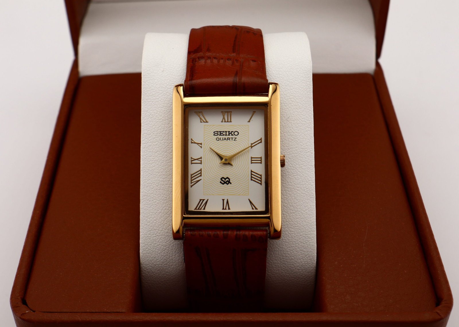 Refurbished Vintage Seiko Slim Tank Men's Wrist Watch White Dial With Dark Brown Strap Original price was: $100.00.Current price is: $69.99.
